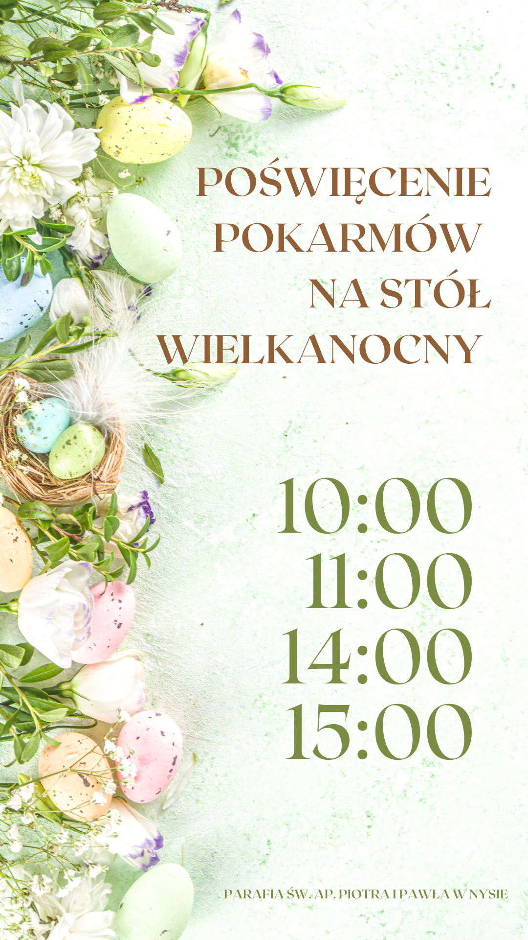 ▪️WIELKA SOBOTA: Adoracja Pana Jezusa w Bożym Grobie, od godz. 08:00 do godz. 17:00. Poświęcenie pokarmów na stół wielkanocny, o godz. 10:00, 11:00, 14:00 oraz 15:00. O godz. 20:00, Uroczysta Wigilia Paschalna.