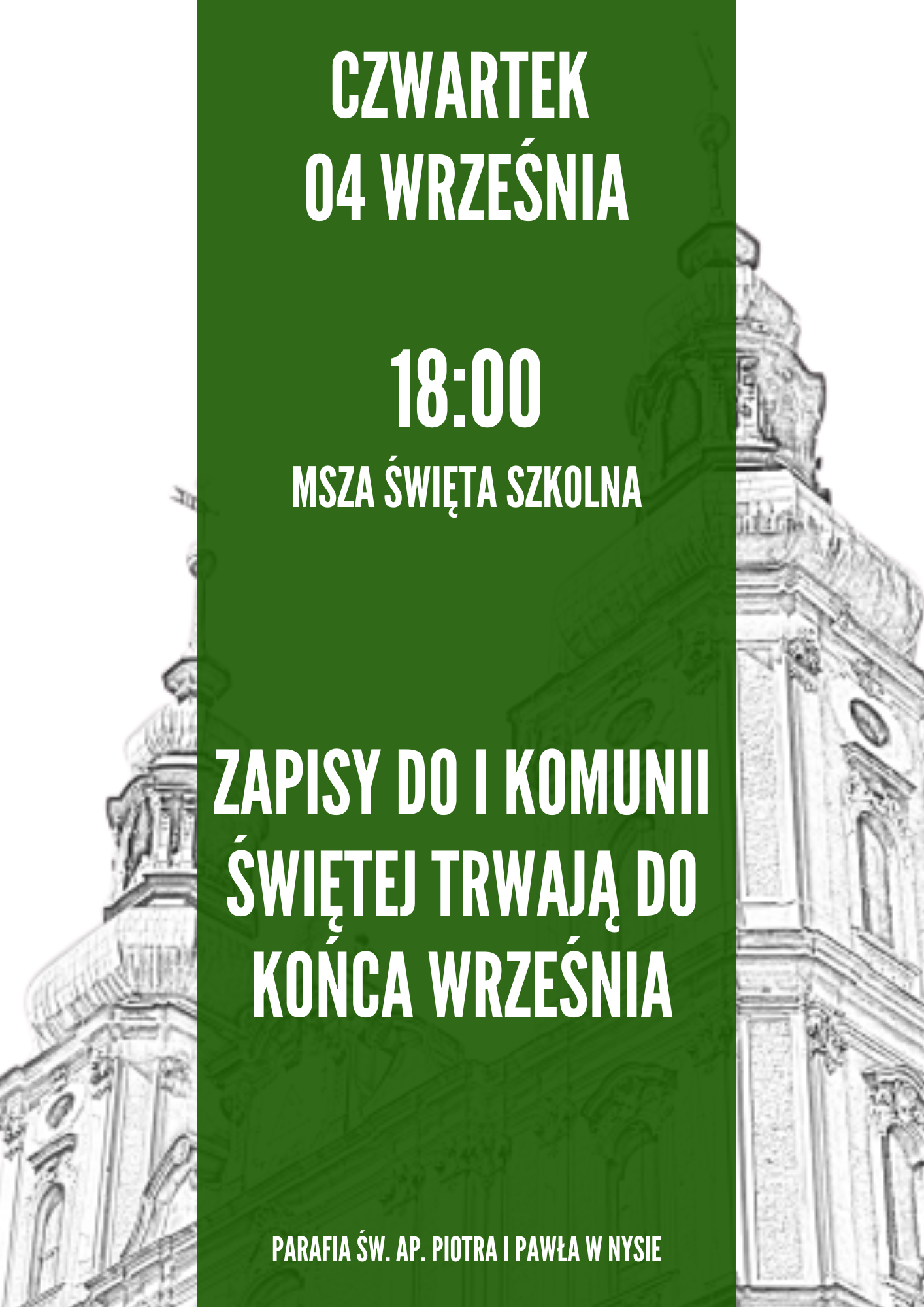 Również dziś, rozpoczną się zapisy Dzieci, do I Komunii Świętej, które potrwają do końca września